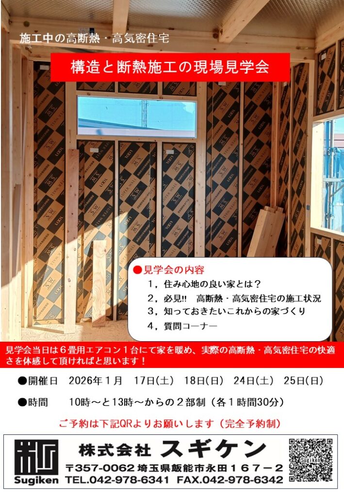 2026年1月17日(土)から週末に2週連続で【構造と断熱施工の現場見学会】を行います。
